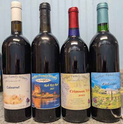 | Wine Labels History | My labels are posted in groups by the year the wines were bottled in. This shows the progression of my label making “talents”. This took a big jump in 2021, when I started using a graphic as a background, so there’s no white space. | 07/18/2024 |