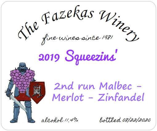 | 10/26/2020 | I miscalculated the ABV for the Squeezins’ — the value 11.4% is low because I used the didn’t take into account the amount of wine left in the pomace when taking the OG reading. I’m not re-printing the labels, although I fixed the labels for the 2nd run before printing. |