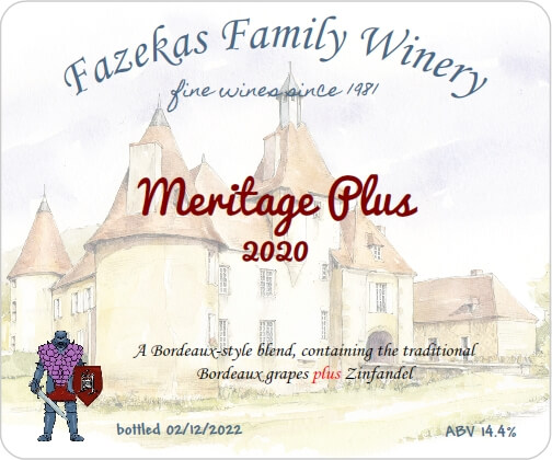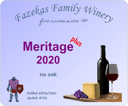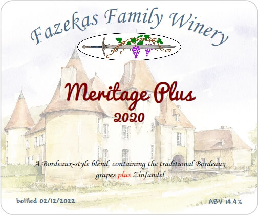 Then there is this wine … the pressings from both Merlot and the Vinifera Blend, plus all the Zinfandel were combined. Since the other wine is “Meritage”, and this one is a similar blend plus Zinfandel, I dubbed it “Meritage Plus”.