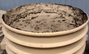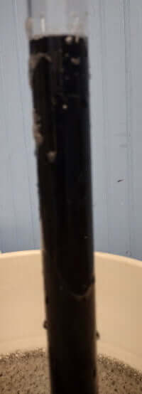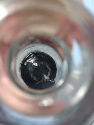 The charcoal layer is solid — it didn’t move a bit when I tilted the carboy to get the last of the wine. Thte next picture is looking into the carboy from the throat. The charcoal is a solid black that almost absorbs light. It really looks ugly.