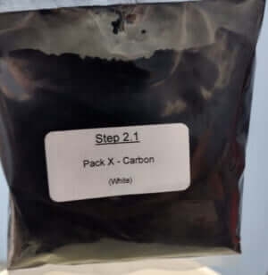 Packet X (carbon) is a fine black powder that reminds me of laser printer toner — I have a fear that it will make a mess. For those unfamiliar with the details of laser printers, toner is not ink, it’s heat activated plastic. The worst things anyone can do with a toner spill is rub it or wash with hot water — that sets the plastic. Always blot with cold water.