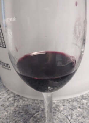 I tried a sample — the color is great and the aroma is definitely blackberry. The taste? For a bone dry, 2 week old fruit wine, it tastes great!
