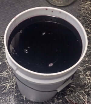 The Strawberry process is a bit different. I dissolved the bentonite and carbon in 1 US gallon of water and let it set for 10 minutes. Supposedly the bentonite and carbon bond, which helps with clearing. Then I added the concentrate, which had a few thick spots, and diluted to 23 liters. The SG was 1.102, which is high. I expect the must to meld better overnight, so in the morning the SG should be lower.