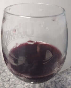 This produced a louder fizzing, and a thin red foam appeared on the surface, as shown in the left photo above. This covered the entire surface but dissipated quickly — by the time I grabbed my phone and activated the camera, the foam had started to clear. Next I stirred the wine, which produced audible fizzing, but no reaction — IMO this is goodl.