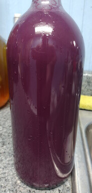 The color of the juice in the picture is Chambourcin after 4 hours of macerating while driving home. The juice was nearly that dark coming out of the crusher.