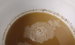 The second problem is chunks. A lot of the spices dropped as sediment. It may not be clear in the picture on the right, but all the sediment is dark brown, and there are large pieces.