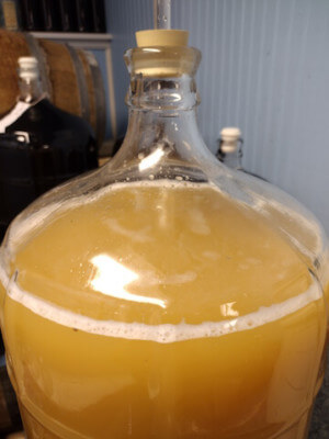 This added the apple flavor I was seeking and muted the spice flavor, which was previously overwhelming. I racked back into the 25 liter demijohn for bulk aging.