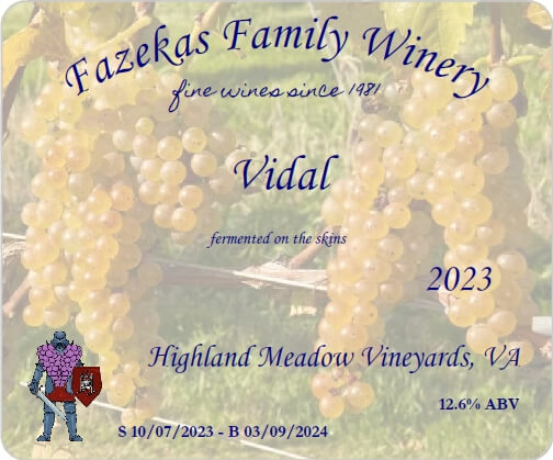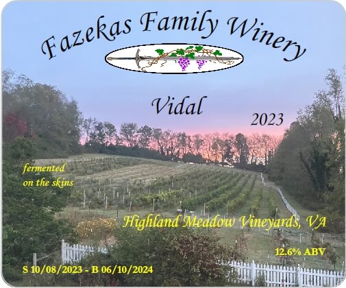 In March Eric & I bottled the Vidal-Juice, and as usual, made two slightly different labels. The background is Glade Springs Vineyards, where the grapes were grown.