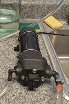 For racking the barrel, we used the transfer pump. There was a significant leak in the output connection, but we made it work.