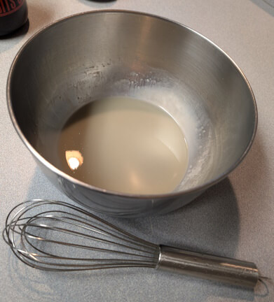 The problem? the packet is designed for 66 gallons of wine, but it’s a tiny amount of material. However, since it’s best to rehydrate first, I reserved a small amount for when the Vidal arrives, and dissolve the remainder in water, which I let set for 5 minutes. The package says to rehydrate for no more than 10 minutes.