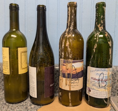 The Chambourcin took almost the full 750 ml bottle, maybe an ounce remaining. This is not a surprise, as the top barrel in the rack always needs more wine. I suspect it’s a heat factor.