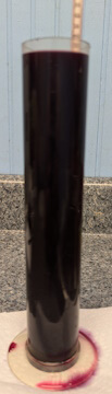The wine in the test jar is Chambourcin – it’s got a very dark color, like last year.