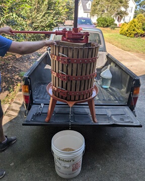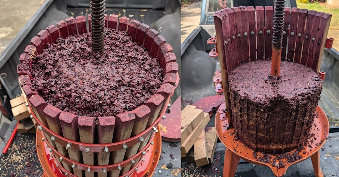My hope was to get about 2.5 gallons more wine from the pomace, so that after volume loss due to sediment, we’ll net two 19 liter carboys of wine.