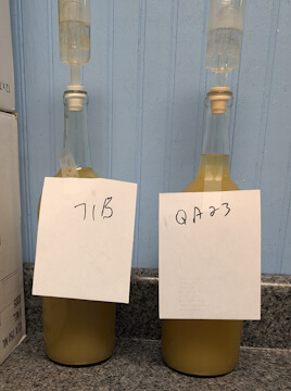 A taste test of the raw wine showed that they taste very different. The 71B eats malic acid, and that one is definitely less acidic. The QA23 has a strong grapefruit taste.