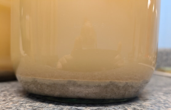 The right carboy is cloudy due to the bentonite and having the sediment stirred up.