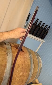 This also shows my racking jig in action. In the left photo (above) the jig is in the lower right corner with a FermTech wine thief inside it.
