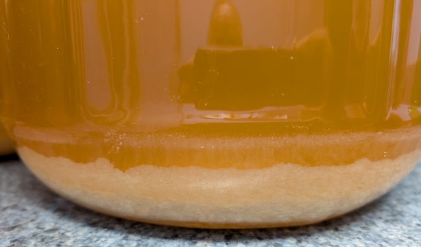 It’s interesting to watch, as wine clears from the top down. The 4 liter jug looks about half clear, which is misleading. The gross lees (fruit solids) drops first, then fine lees (yeast hulls) will continue to drop for several months.