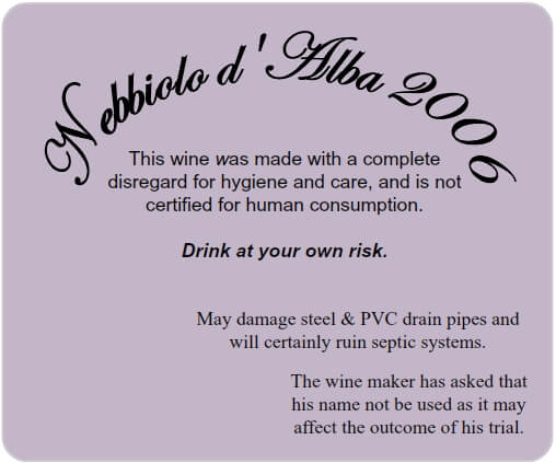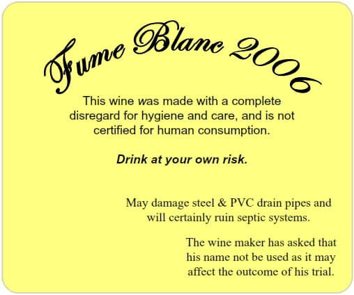 I also made joke labels for 3 of the 4 wines, although they lacked the originality of my earlier ones. In hindsight, I wonder what I was thinking …