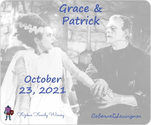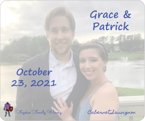 I also made a joke label that both Patrick and Grace liked. I labeled 25% of the wine with the joke label, which was on display at their reception.
