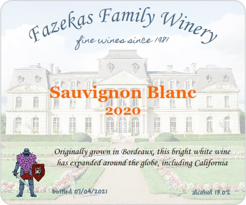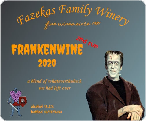 One factor is that my elder son and I are collaborating on wines. He had trouble coming up with a winery name he liked, so I suggested that we continue the collaboration with a common name: Fazekas Family Winery.