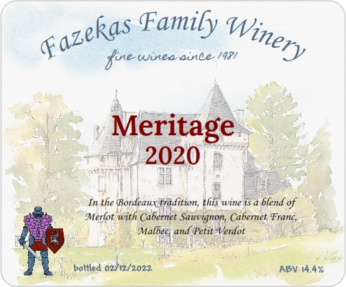 Although the individual gallons were bottled in 2021, the 2020 Meritage and Meritage+ barrels were bottled in 2022. As with our other collaborations, there are 2 versions of each label, one with my logo (Grape Warrior) and one with my son’s logo (Grape Vine Wrapped Sword).
