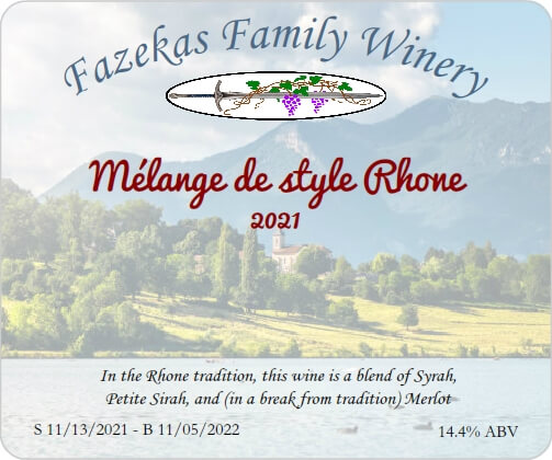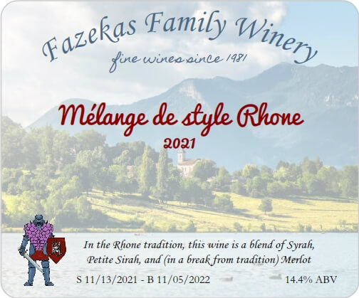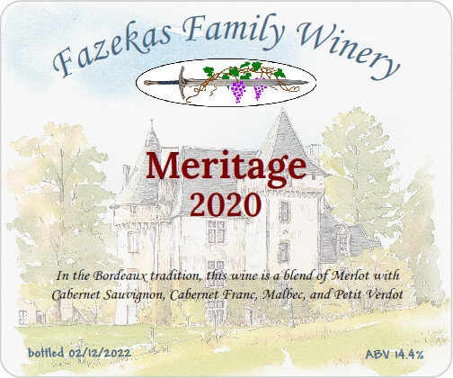 The Metheglin has a honey comb background. For the Merlot and Zinfandel, I took the photo that was on the original label, stretched and faded it, and used it as a background. All labels have the “Fazekas Family Winery” name.
