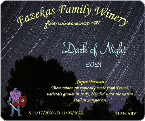 The “Port” is made from a blend of the 2021 Rhone and Super Tuscan. What’s special about this one is I took a graphic of a dancer and modified it — the dancer filled the graphic, and would have to be lightened severely to use “as is”. So I used Paint.NET to stretch the background, producing a large area where the text is easily readable.
