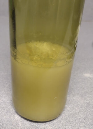 Repeating the process, I kept an eye on the wine bottle the starter is in, and noticed there was minimal activity. I also noticed that the starter is opaque, milky looking.